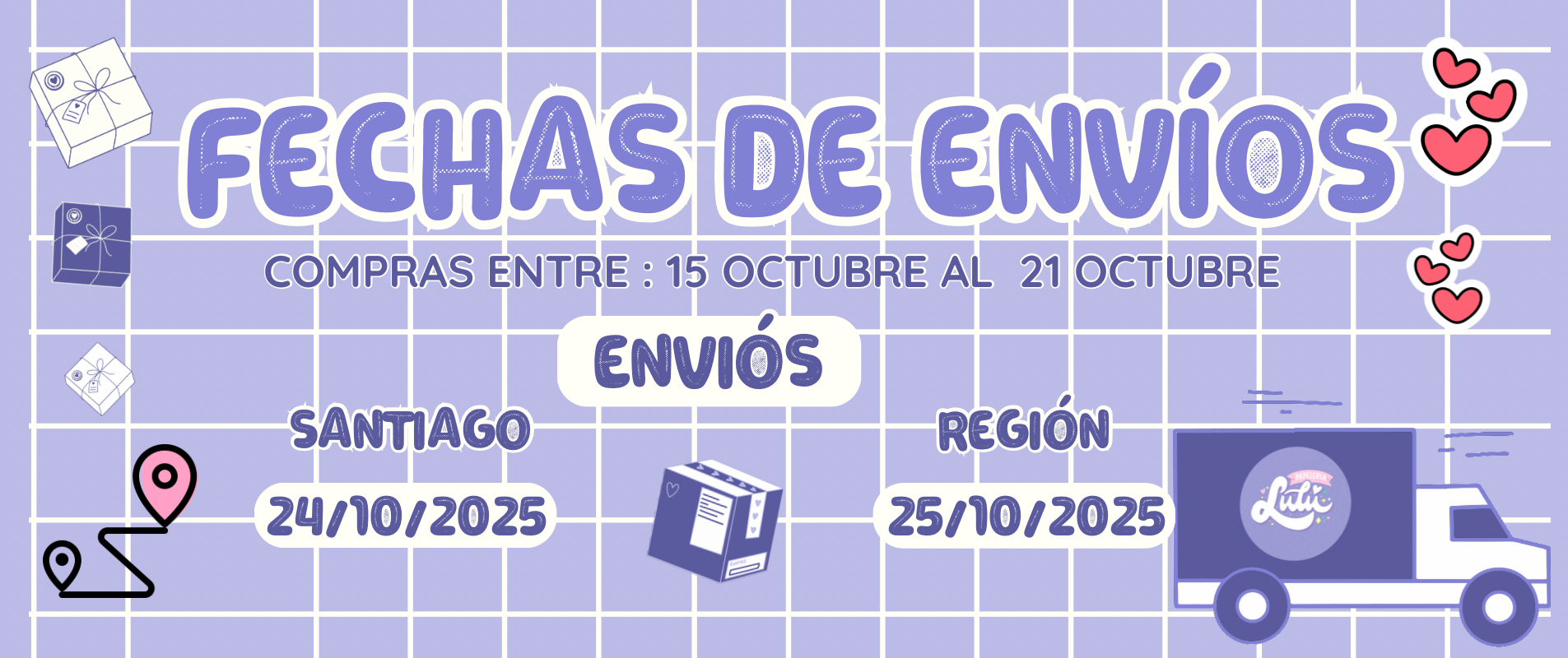 Compras entre 15 OCTUBRE AL 21 OCTUBRE ENVÍOS: •SANTIAGO 24/10/2025 •REGIÓN 25/10/2025